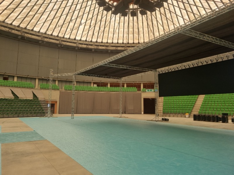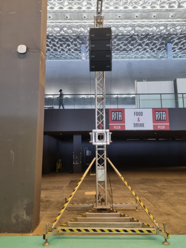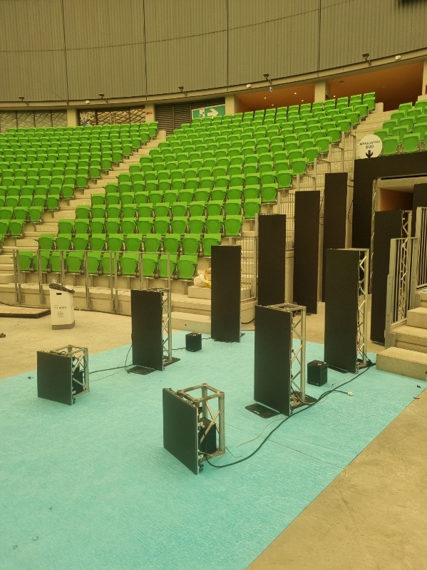 Gli allestimenti vengono progettati per soddisfare le esigenze specifiche delle competizioni sportive, garantendo visibilità, qualità del suono e coinvolgimento del pubblico. Sistemi audio professionali permettono una diffusione chiara delle comunicazioni e della musica, mentre le soluzioni di illuminazione contribuiscono a valorizzare il campo di gara, le aree spettatori e le zone dedicate alle premiazioni.